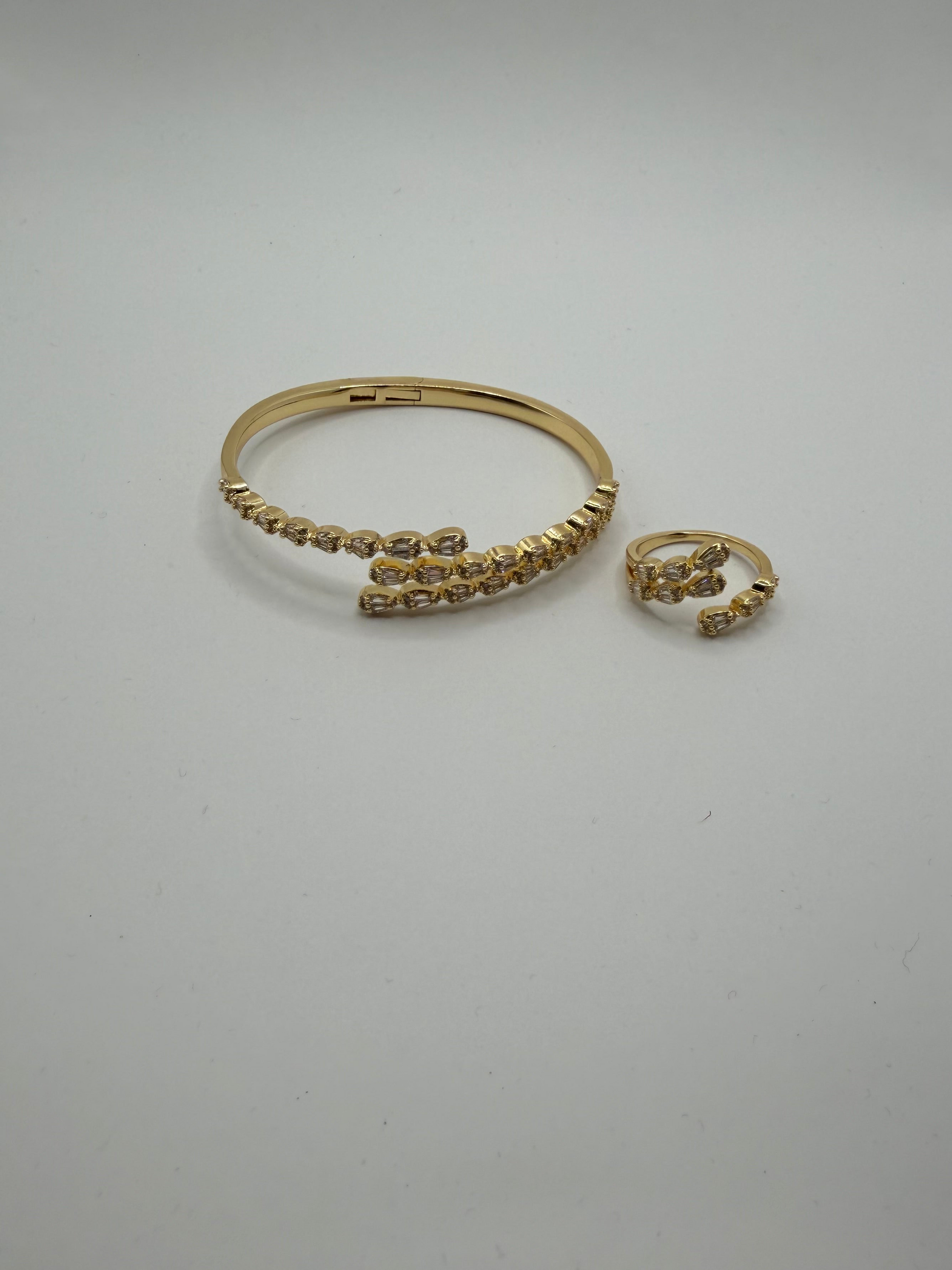 Marquise Vine Bangle & Ring Set – 18K White Gold Plated