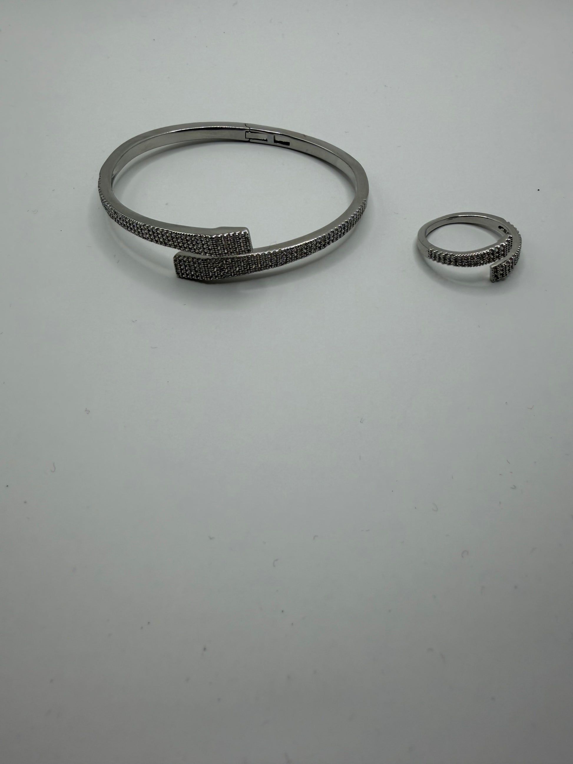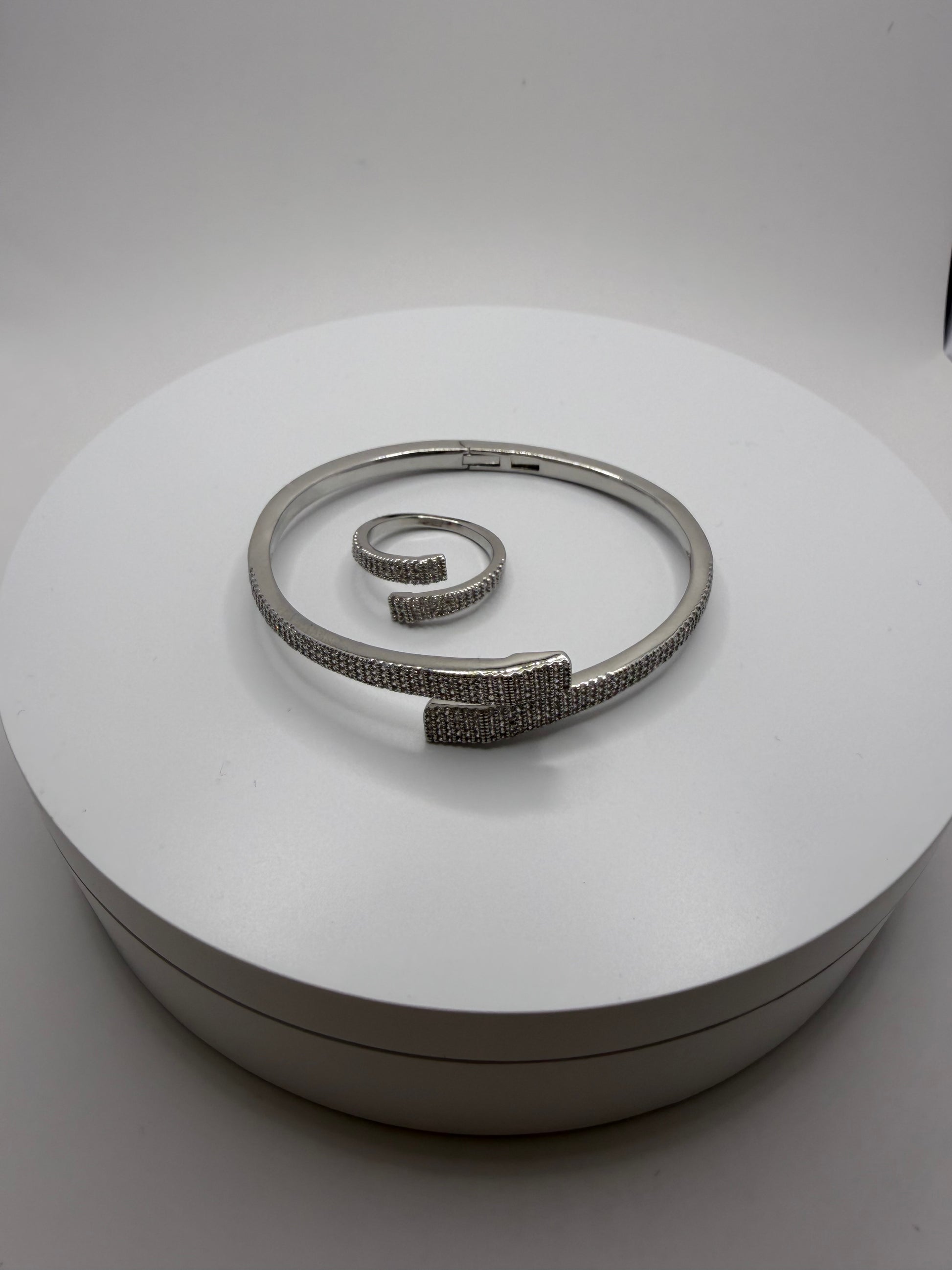 Nova Pavé Bangle & Ring Set – 18K White Gold Plated